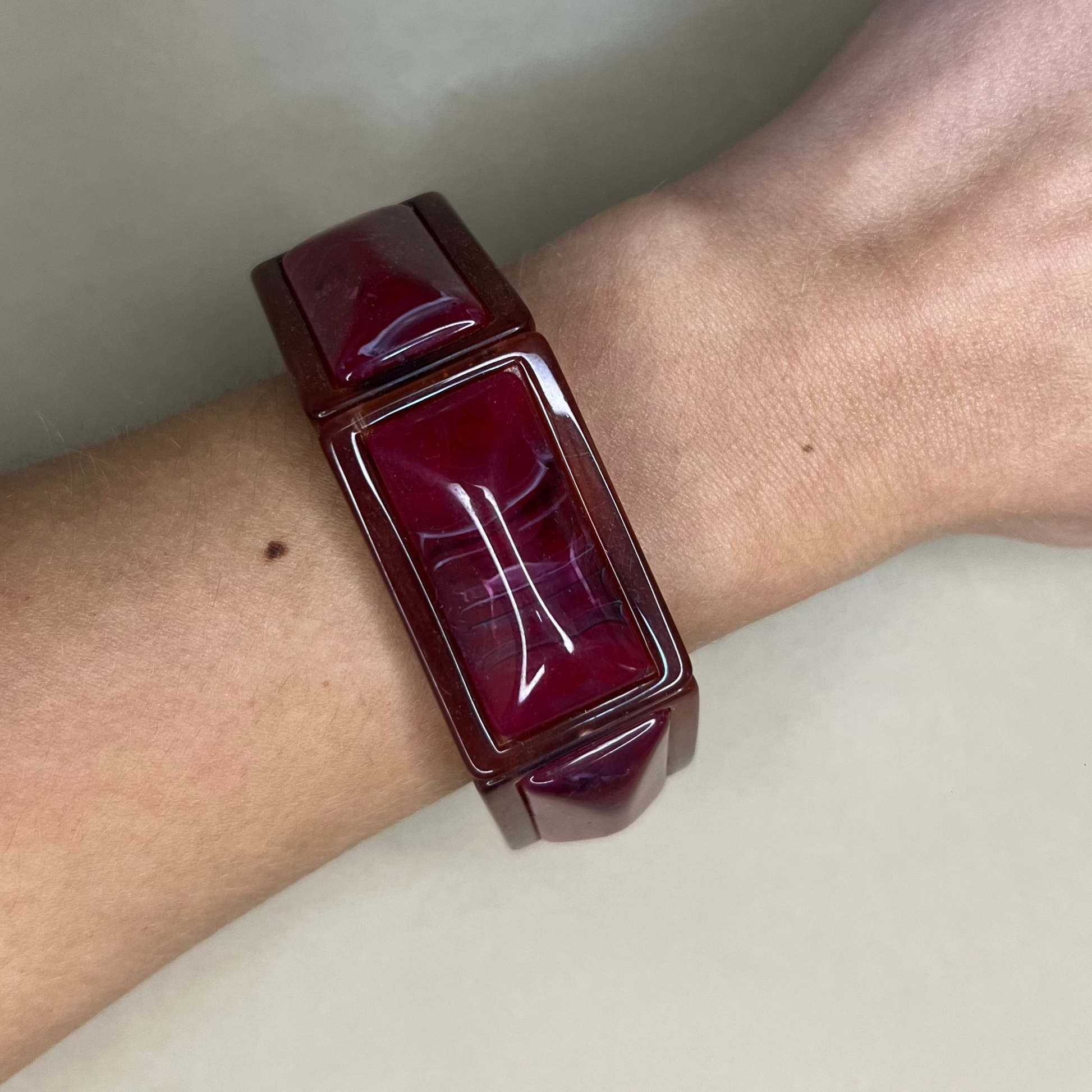 Jonc en résine Bordeaux, s'adapte facilement grâce à ses élastiques.